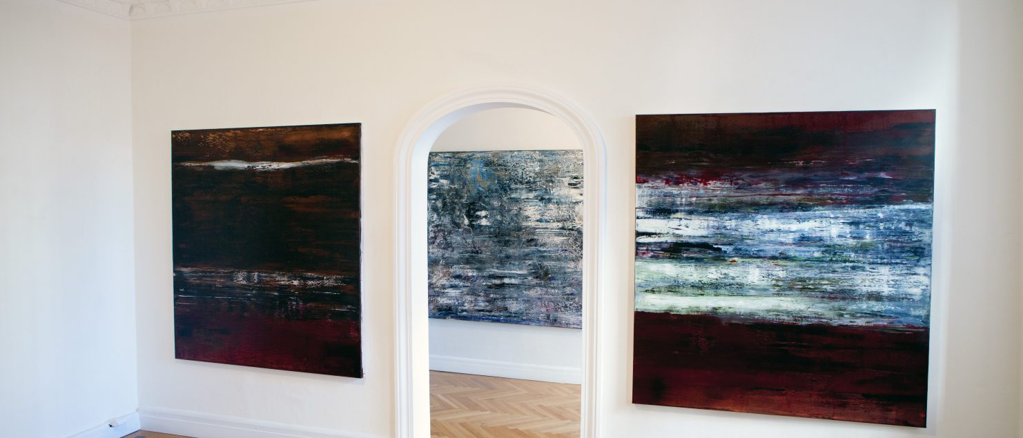 Unsere Augen sehen in einen sich erweiternden Raum, Unbekanntes verbirgt sich hinter den Schichten. Eine Freude ist es, diese potentiellen Überraschungen mittels der Erscheinungen zu erleben, die wir an der Oberfläche sehen können. Es steckt noch so viel drin im Untergrund; die entscheidenden Stellen gibt uns die Malerin entschlossen frei.